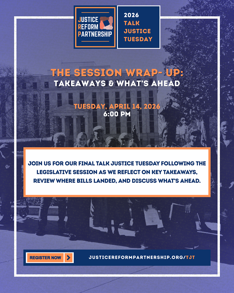 Talk Justice Tuesday is a state legislative series focusing on discussing key issues and solutions relevant to communities affected by criminal legal systems. This series involves deep dives into specific policy questions and features insights from community members, advocates, and lawmakers about reform opportunities at both the State Capitol and within local communities.